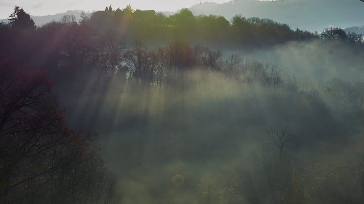 DECEMBER 16 and 17 — I can hear the night moving away on these mornings, so cold, but like winter should be. The hill takes the shape of both wind and mist, softened contours are cradled in a sort of warm caramel-cream swirl enticing me to rest a while, and how quickly time passes in these colours… I am almost late to classes again so loud is my longing to be wrapped in the same warm-toffee glow it’s hard to pull away…